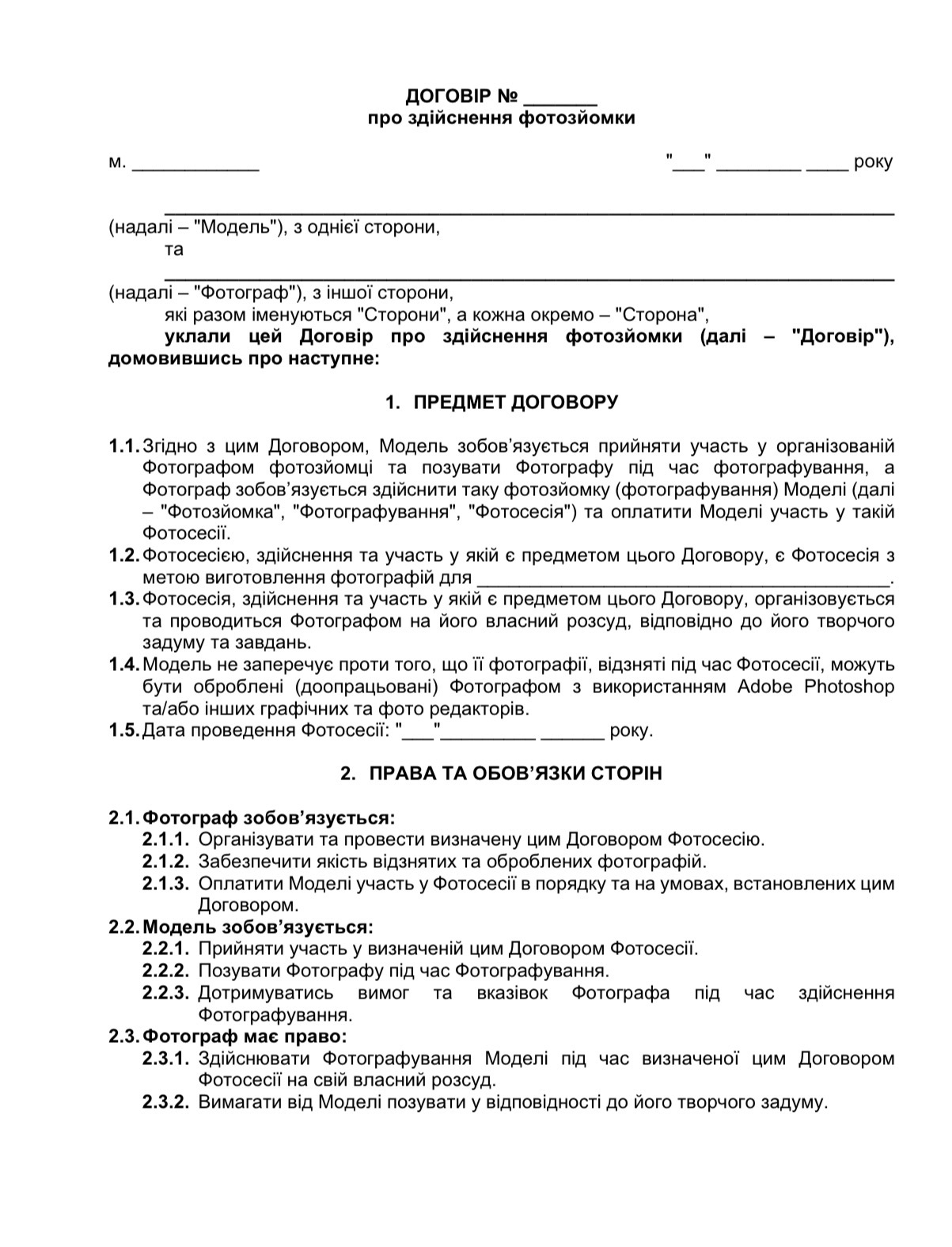 Але ви можете адаптувати цей договір під свої потреби, адже він підійде як основа для будь-кого, хто провадить діяльність у сфері фотографії.